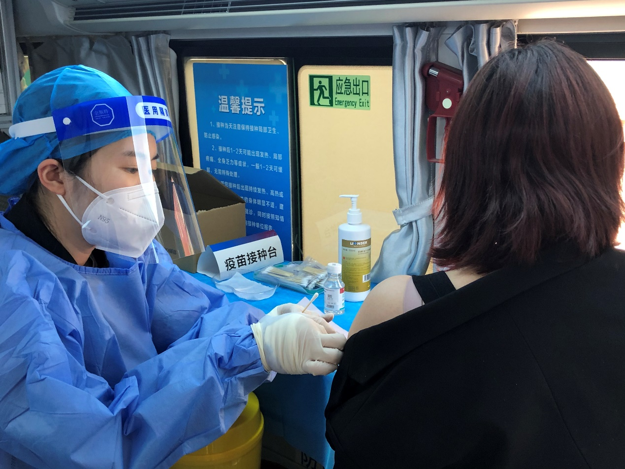 北店嘉園小區居民劉女士告訴記者:“這個設計能在接種過程中保護女性的隱私,非常貼心。”考慮到接種人員及醫護人員長期停留在車上的情況,移動疫苗接種車還配備了USB接口等設施,車外也配備了伸縮式帳篷,既為醫護人員提供便利工作環境,也為接種人員提供舒適留觀場所。